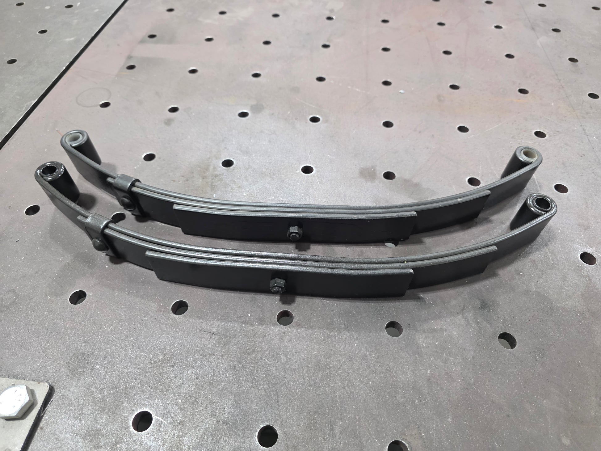 1K double eye springs Qty 2, 3-leaf, premium Dexter part no 1020. Eye to eye dimension of 20-3/8" x 1-3/4" wide