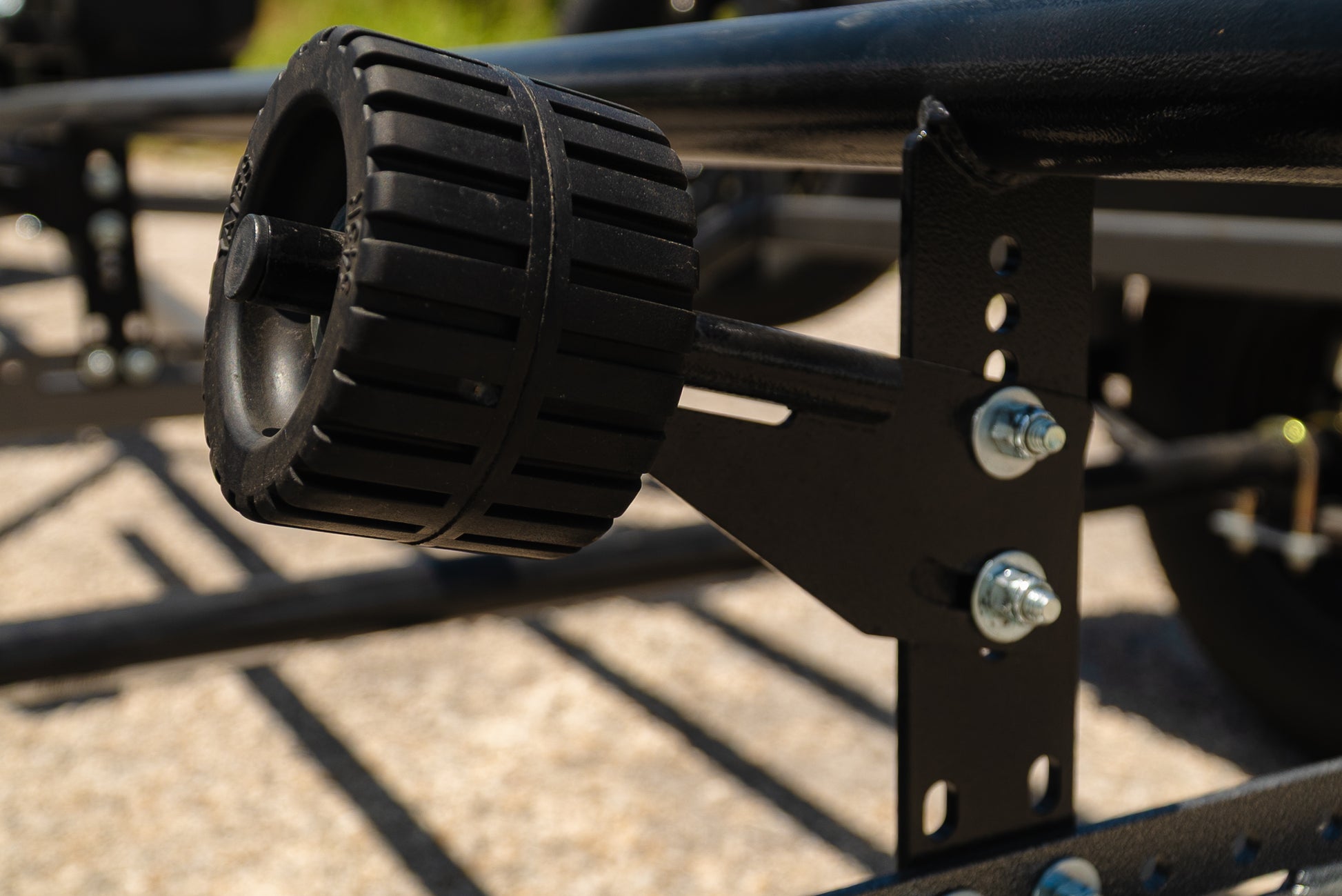 The "Rock'n Roller" kit provides greatly enhanced trailering stability for kayak trailers utilizing bunk style rails. The True-Trak nature of the Rock'n Rollers spreads the weight of your kayak out from isolated scupper points to the outer hull which reduces the continuous impacts felt on your kayak's hull from trailering long distances. All kits are laser CNC cut, laser welded, and fully powder coated hammered black.