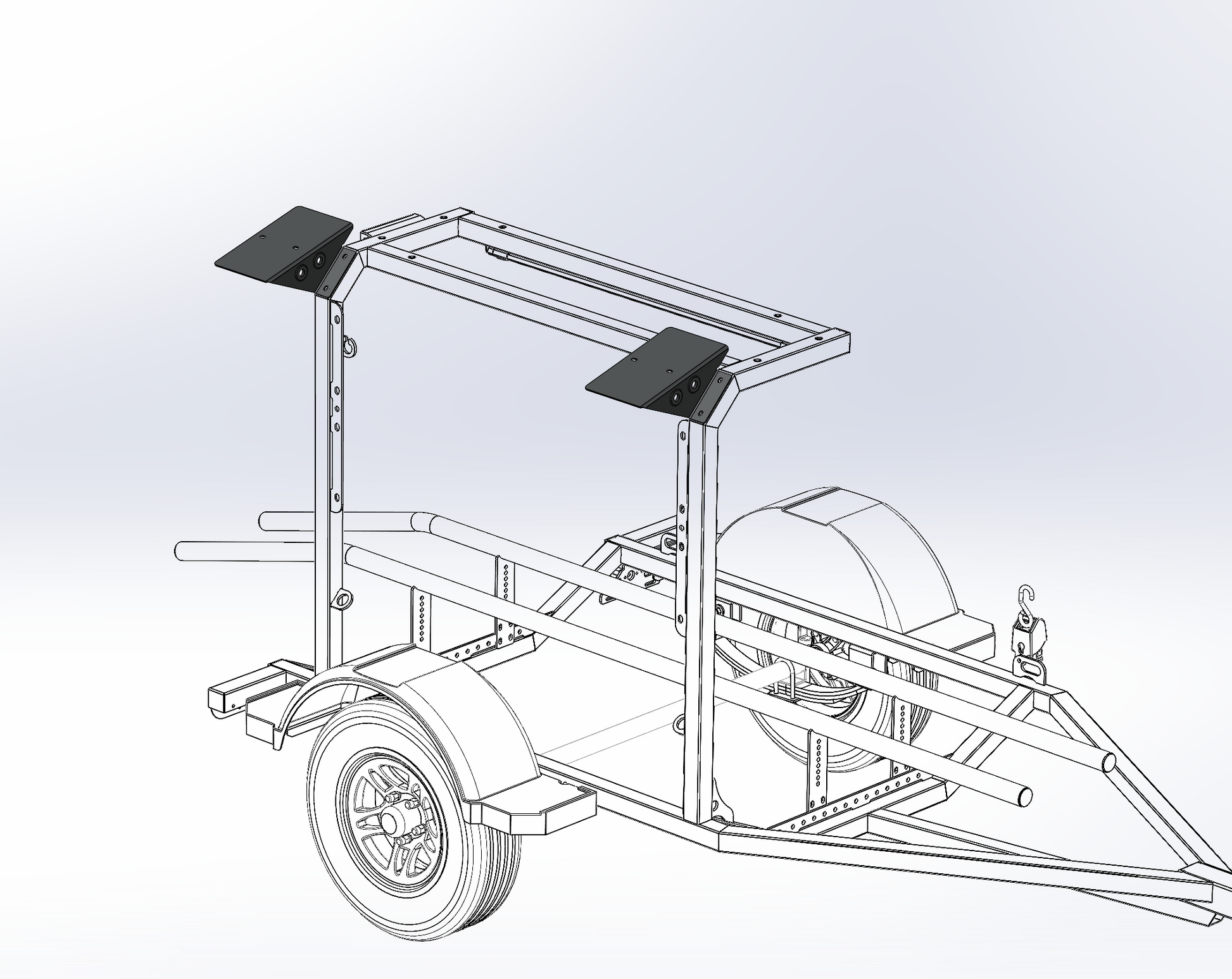Designed specifically for the 45-degree leg on your trailer rack, these brackets position the Top Water box at a 15-degree angle toward the angler, giving you faster, easier access to your gear. Each bracket is laser-cut from rugged 11-gauge steel and finished in a tough hammered-black powder coat for maximum durability and a factory-grade look.